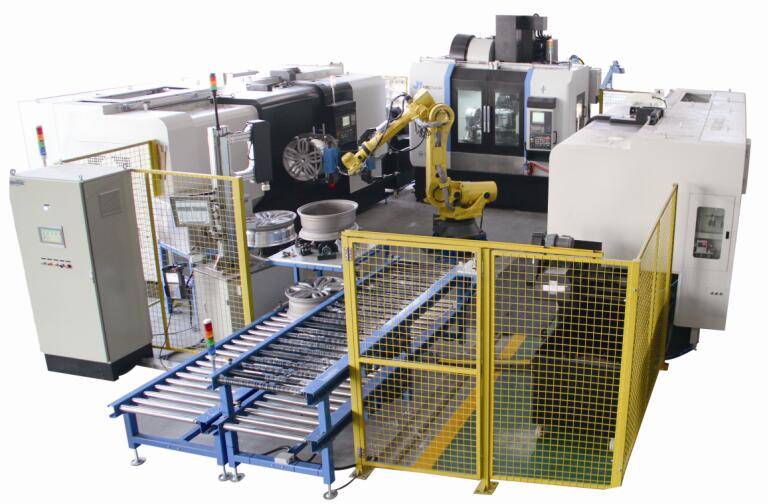 2016年,济南一机与兄弟公司苏州德迈科公司技术协同,联合推出了“机器人+高档数控机床”组合智能制造新模式。在汽车轮毂加工机床市场,公司以全系列高端机床产品先后推出了“品字形”“地轨L型”和“桁架式”三款汽车铝轮毂加工智能化生产线。该生产线不良品率下降约35%,实现节能增效约50%,并以其高精度、高刚性、高可靠性和自动化、智能化,突破了国外技术壁垒,打破了国际同行的市场垄断,替代进口,领跑细分行业发展。产品受到汽车铝合金轮毂加工机床市场的广泛欢迎,产品供不应求。